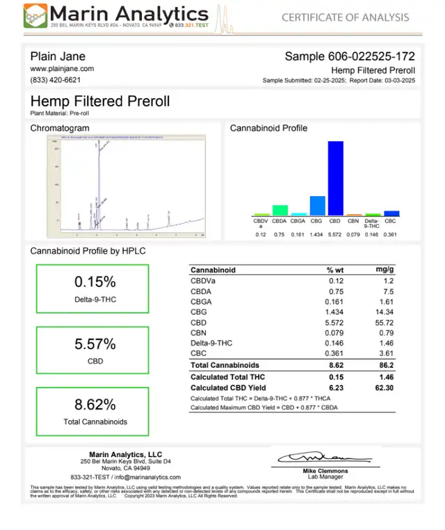 Plain Jane CBD Filtered Pre-Rolls offer a discreet and convenient way to enjoy CBD-rich hemp flower, ideal for those seeking a low-odor product without the need for preparation. Hand-crafted using premium ground hemp flower, each filtered pre-roll is rolled in rice paper with a built-in filter tip for a refined, mess-free experience.